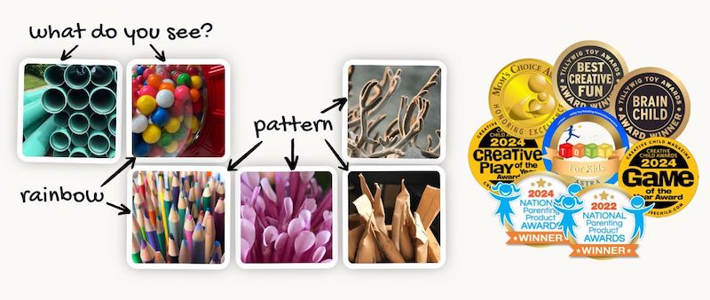 OuiSi makes award-winning sets of Visually Connecting Photo Cards – "this looks like that" – with a Guidebook full of games that ignite fun, creativity and conversation, regardless of age.